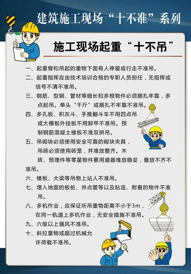 在此,為大家提供建筑工程施工現(xiàn)場常有“十不準(zhǔn)”的掛圖,以防患于未然,為建筑工人的安全保駕護(hù)航。在此,為您分享九款掛圖,總有一款是您需要的!